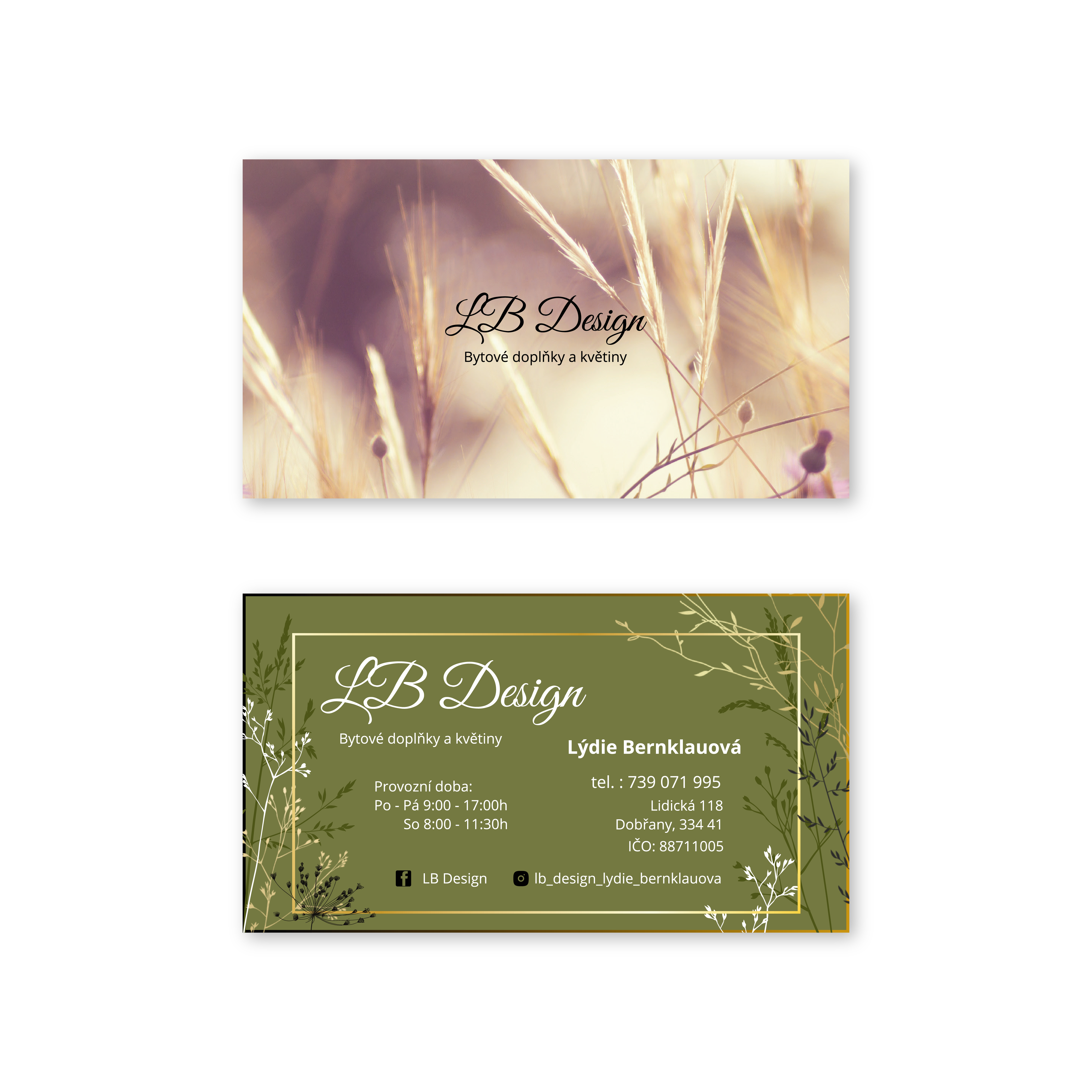 Grafický návrh a tisk oboustranně laminovaných vysoce kvalitních vizitek.