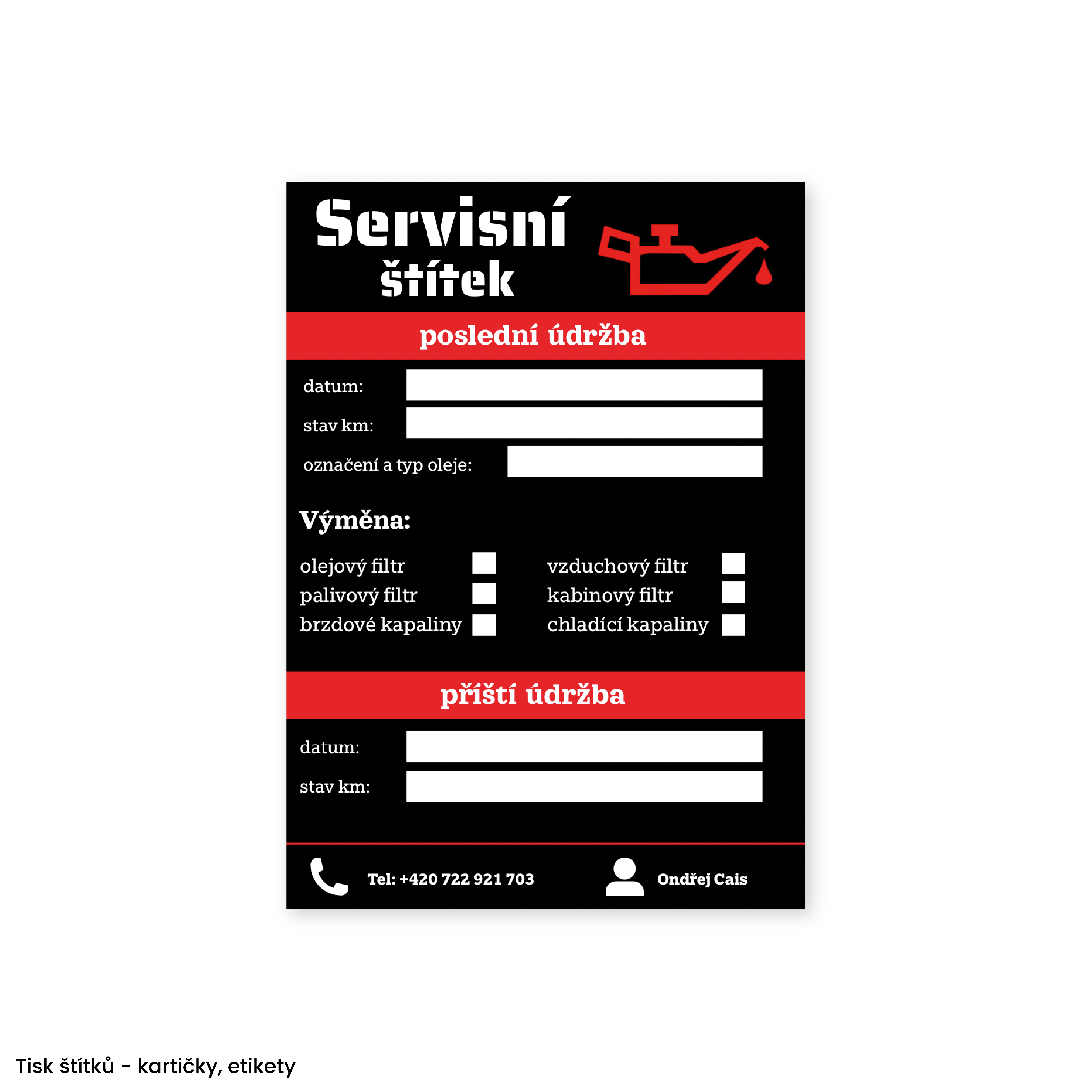 Výroba papírových kartičet servisních štítků a plastových PET etiket.