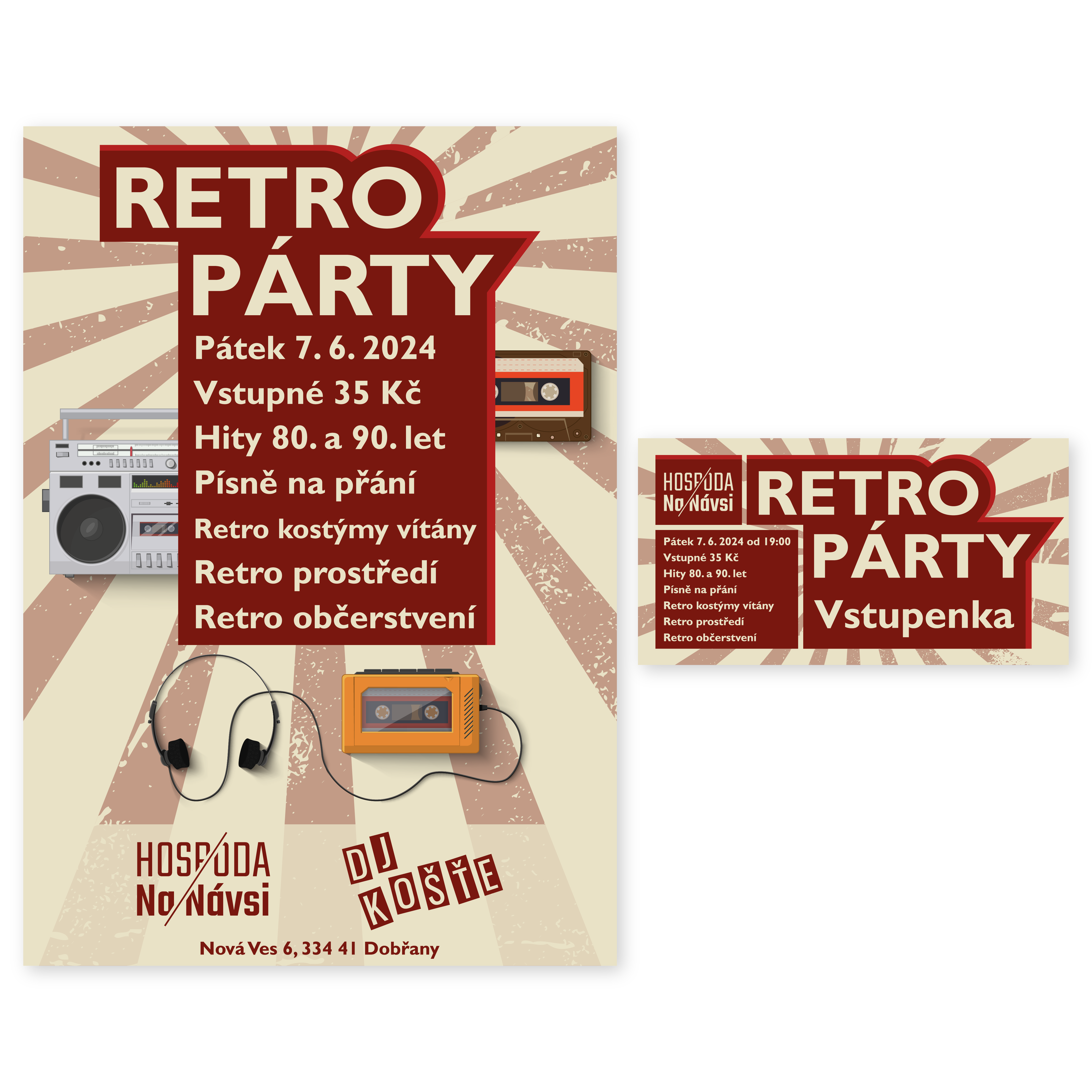 Grafický návrh v retro stylu. Tisk letáků a vstupenek.