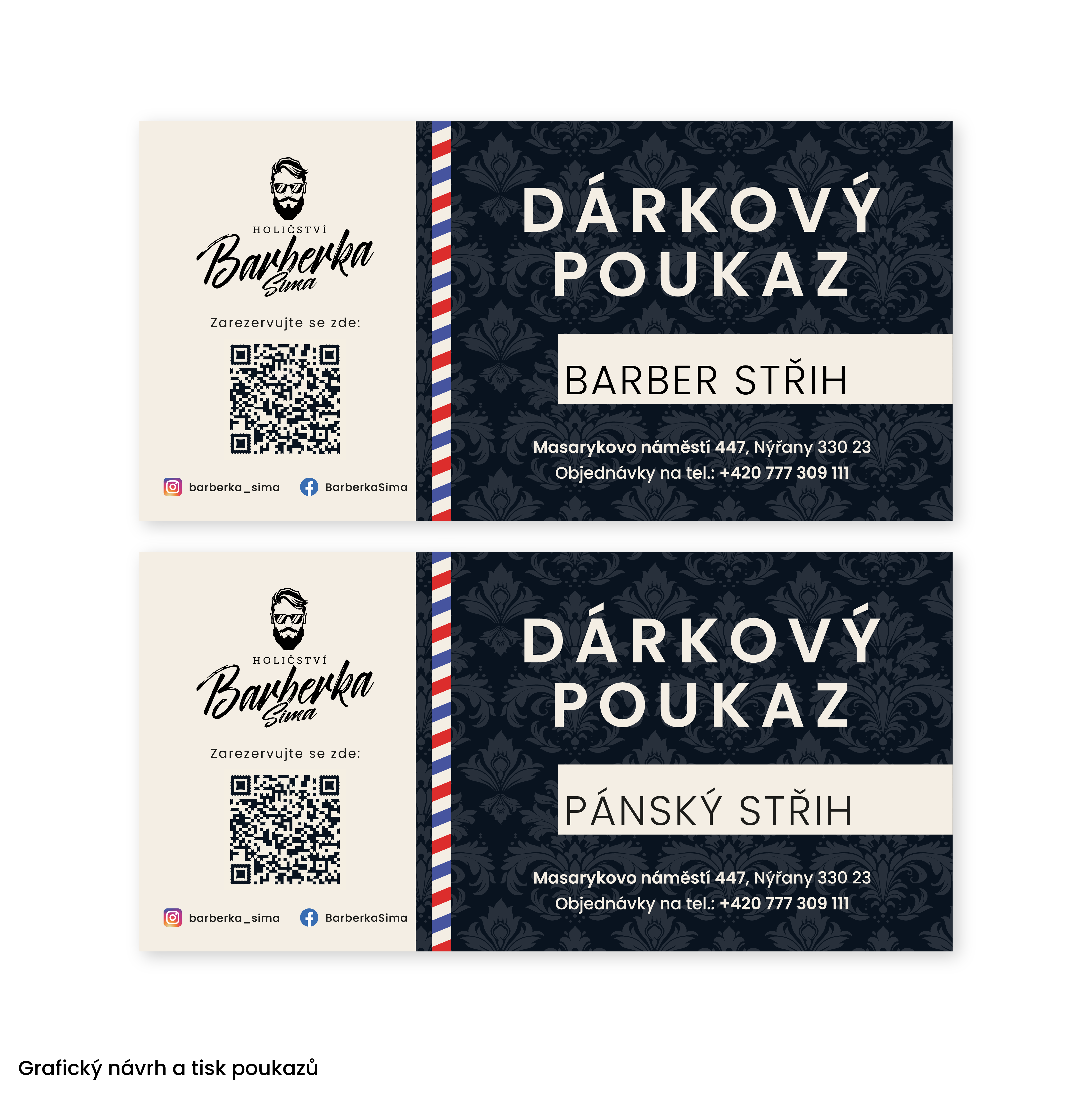 Grafický návrh a tisk dvou druhů dárkových poukazů.