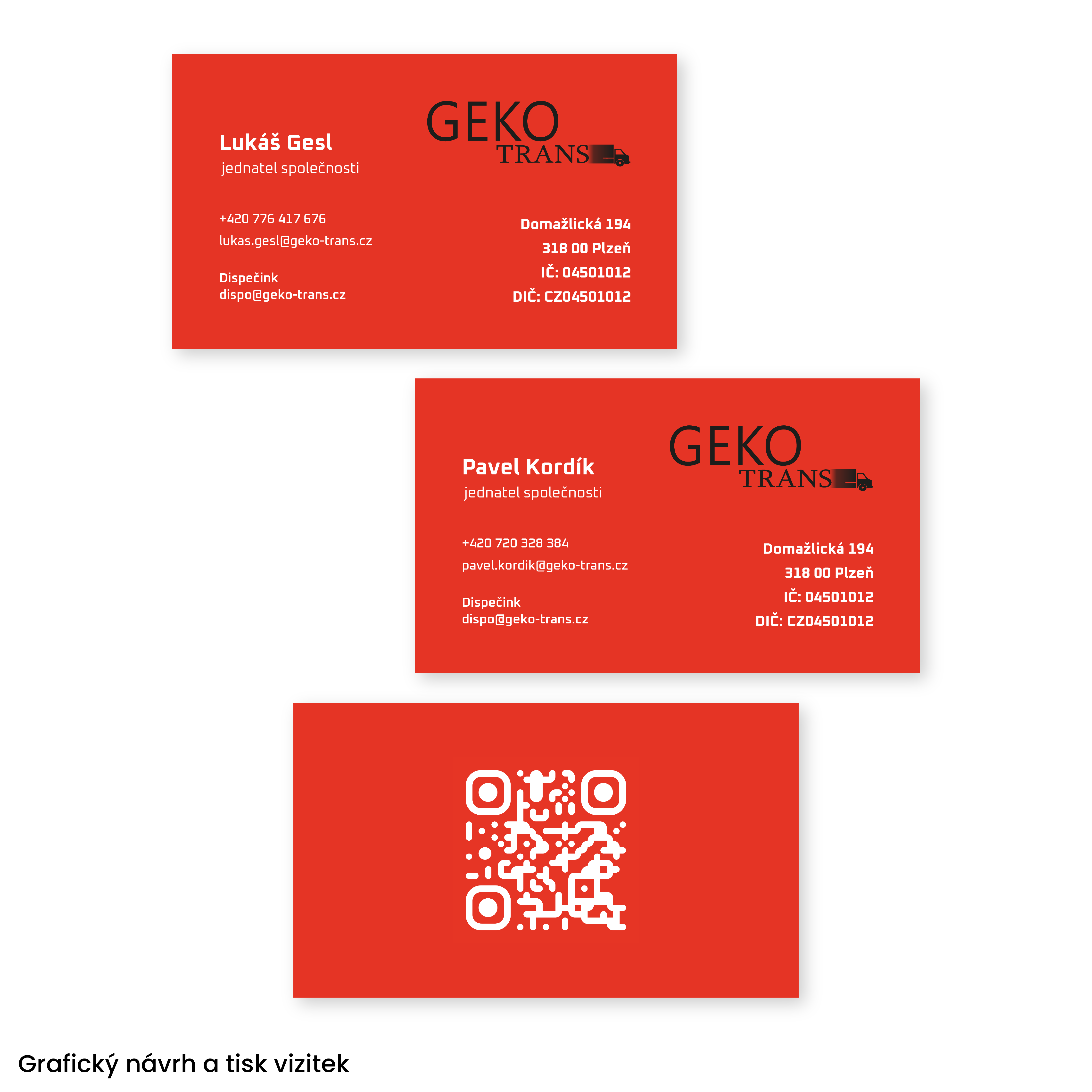 Grafický návrh a tisk oboustranně laminovaných vysoce kvalitních vizitek.